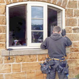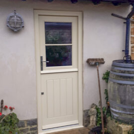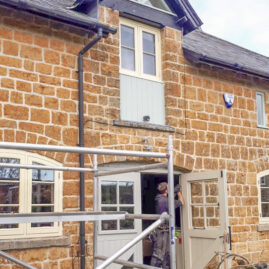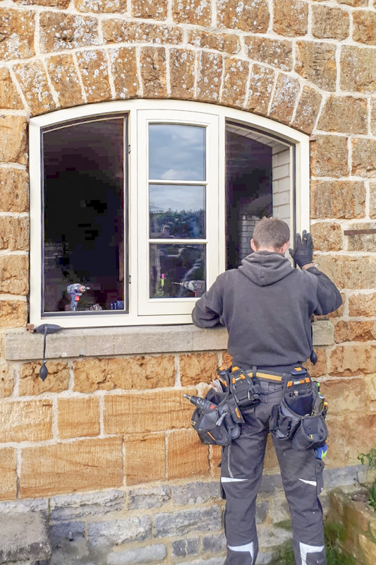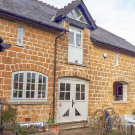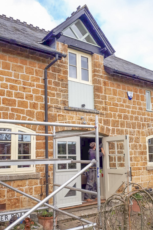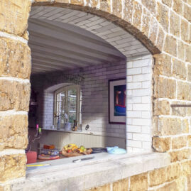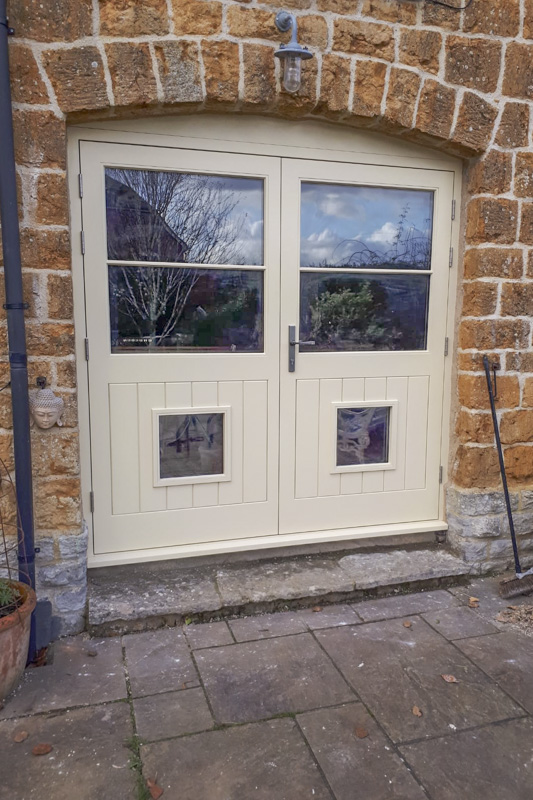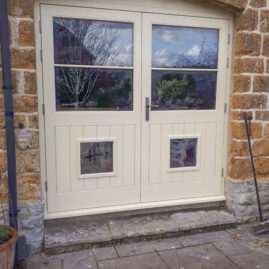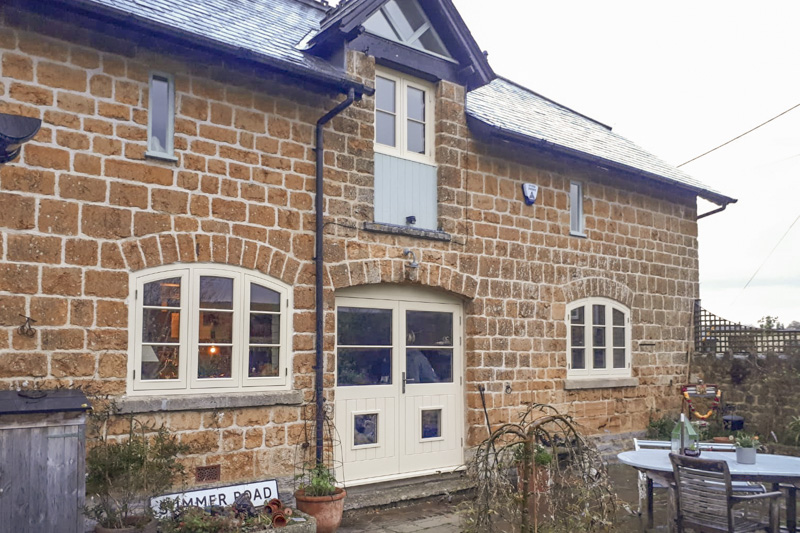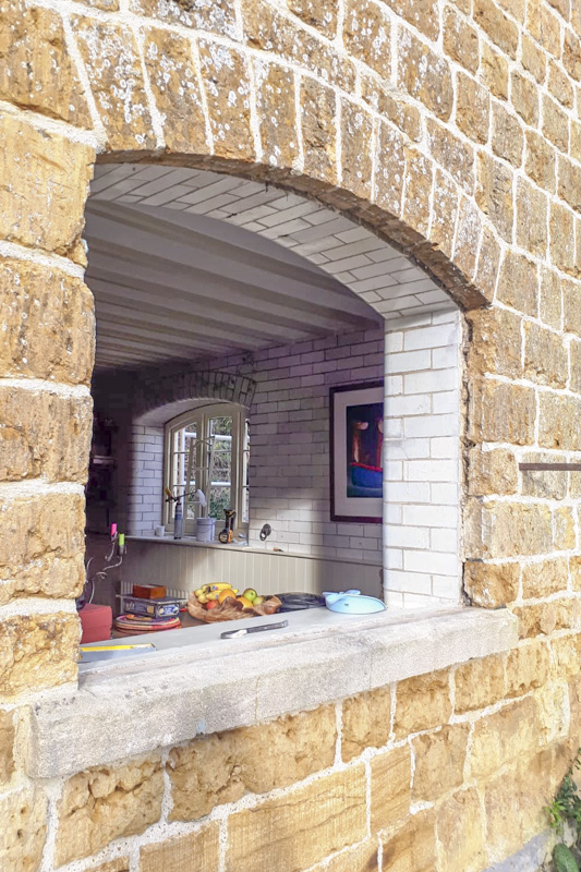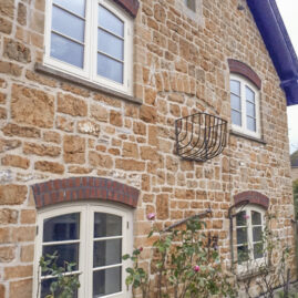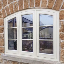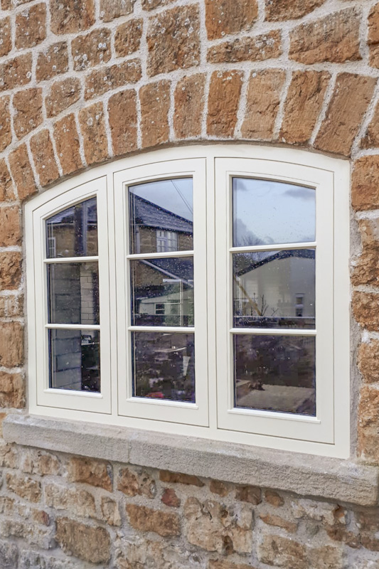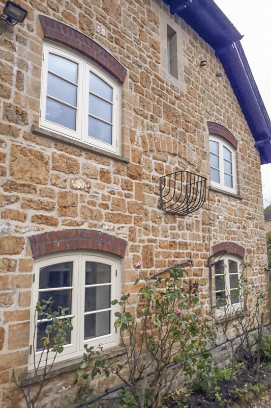 This was originally a stable block, beautifully finished internally. The heads were curved to match the existing stonework and the number of bars reduced for cleaner look. The windows and doors are hung on stainless steel hinges complete with a locking system and colour matched using Teknos paint to ‘Farrow & Ball Farrows Cream No 67’